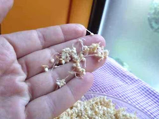 8) Repeat steps 5 through 7 every 6 to 8 hours until you have tiny, cute sprouts. Quinoa can take as little as 24 hours after the initial soak. Some legumes can take up to 5 days.